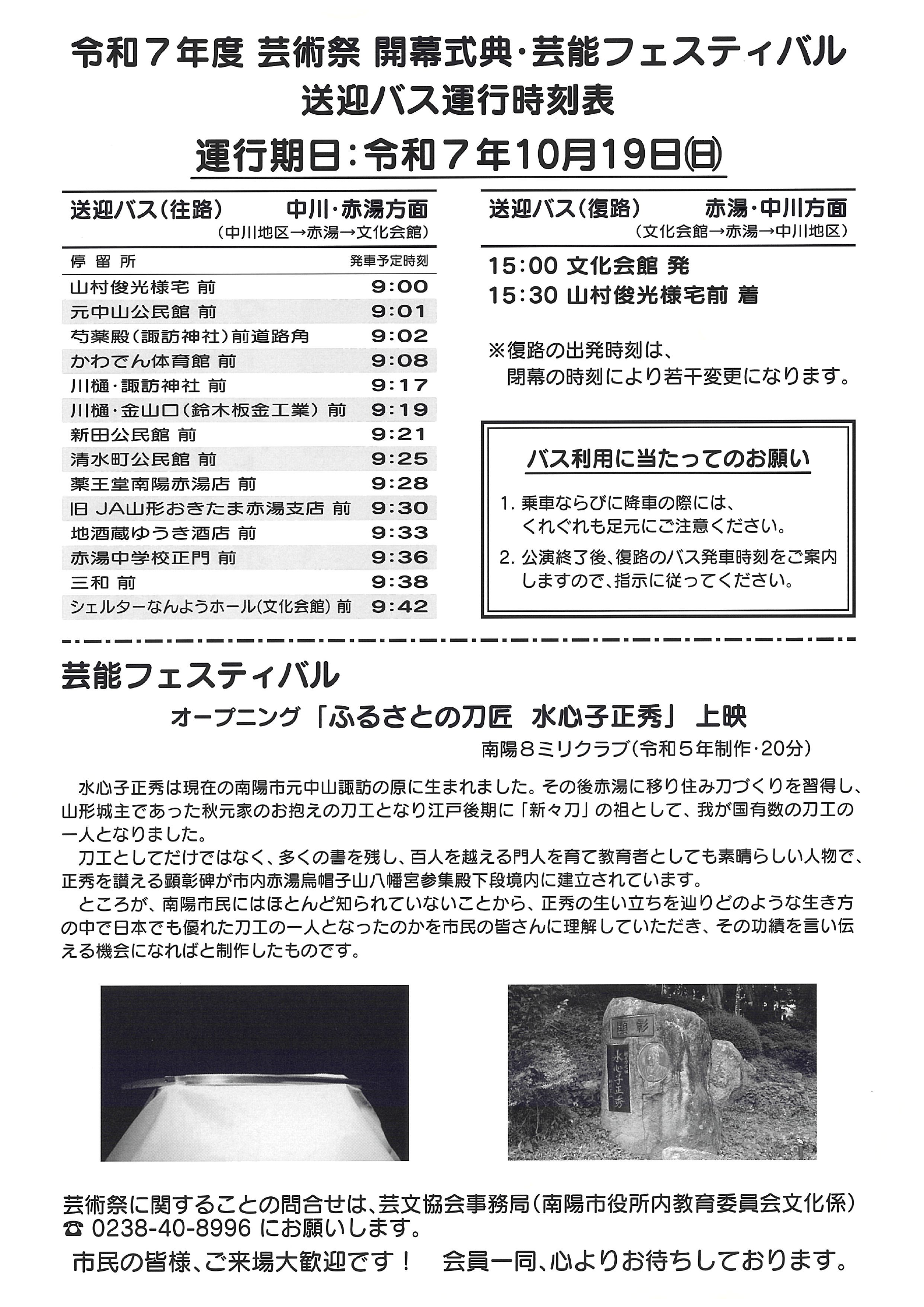芸文協会事務局(南陽市社会教育課文化係)(0238-40-8996)